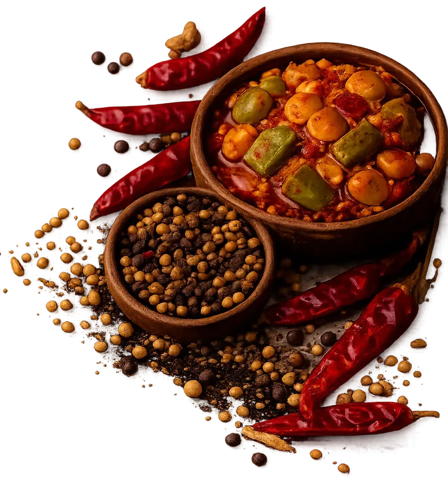 Traditional Kerala pickles, seafood pickles and spices sourced from the high ranges of Kerala, prepared with care and hygiene for your family.